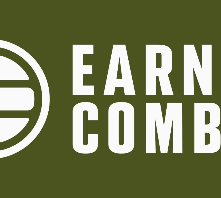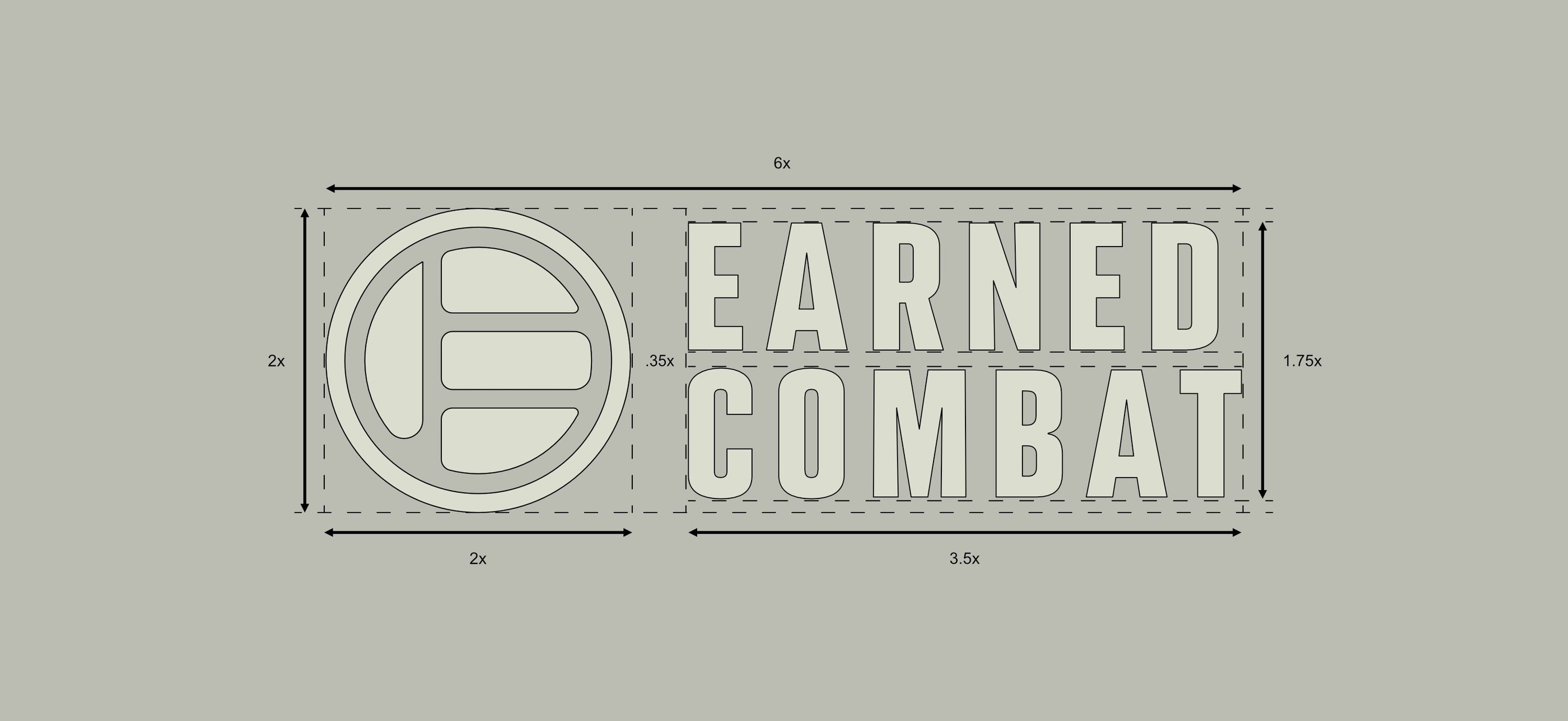 The secondary logo uses a circular design with the Earned Combat name around the main icon. This version gives the brand a more formal, complete look, helping it stand out and be easily recognized. It is best used for signage, event branding, certificates, and other moments that require an emblem style or institutional presentation of the brand.