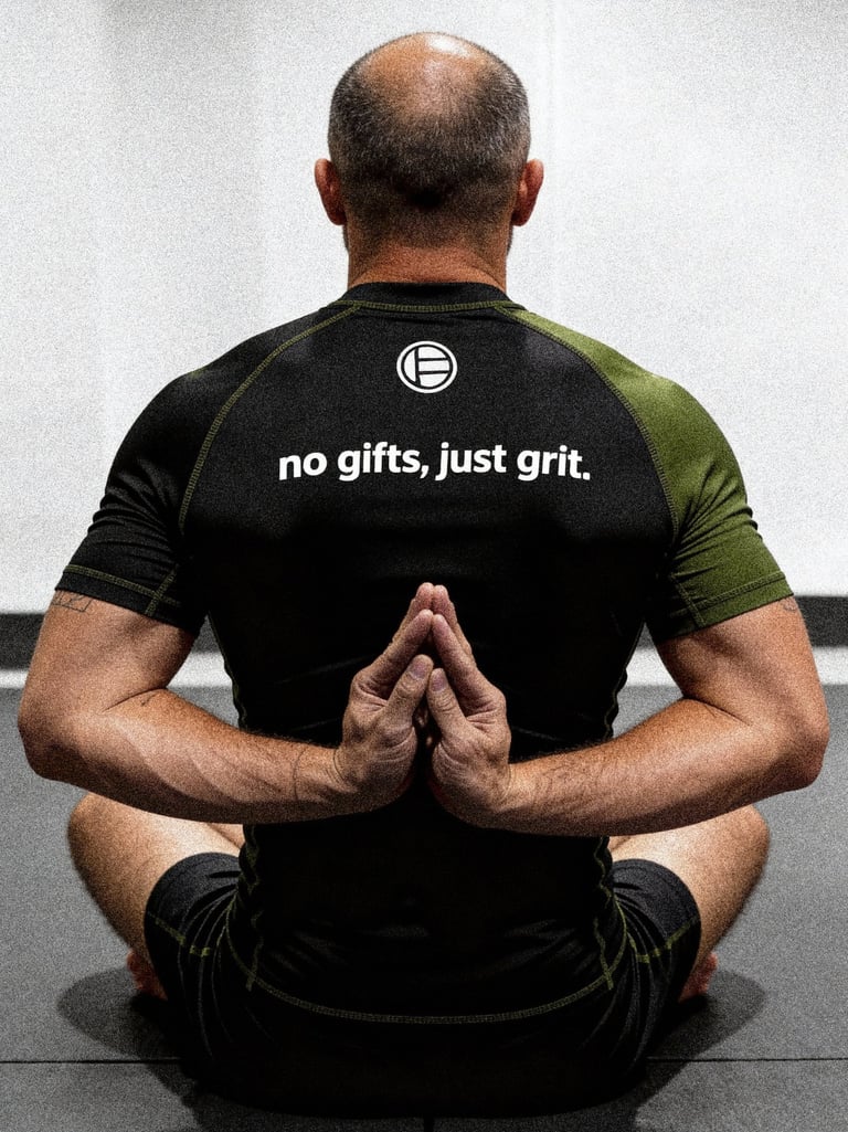 The Earned Combat logo draws inspiration from the fundamental role of hand grip in Brazilian Jiu-Jitsu, where every hold, position, and submission begins with control. The interlocking design of the initials reflects the precision and pressure of grip-based techniques, symbolizing dominance, discipline, and tactical awareness. Built for clarity and strength, the logo captures the essence of control the grip, control the fight.